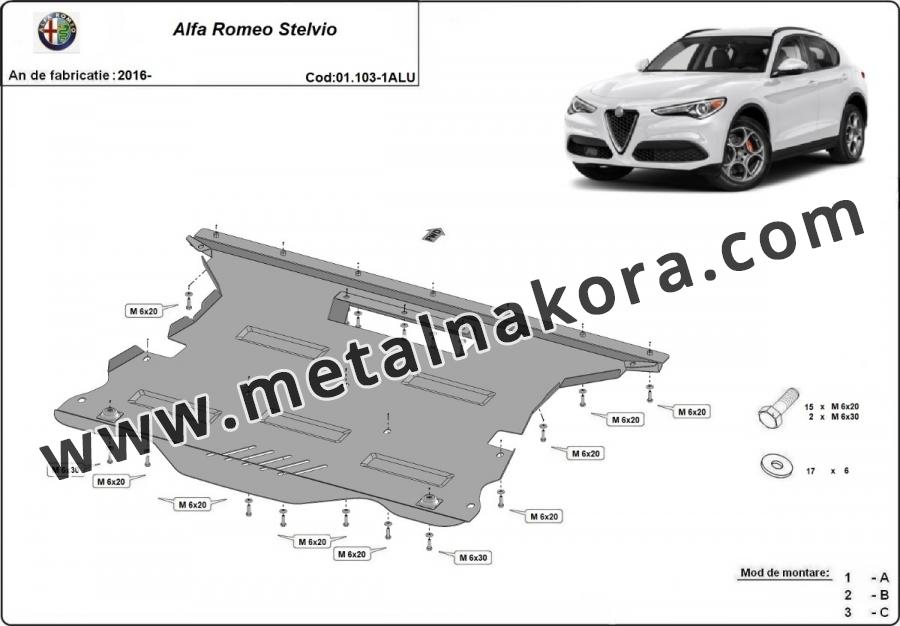 Алуминиев Предпазна кора за двигател, скоростна кутия, радиатор и предна броня Alfa Romeo Stelvio