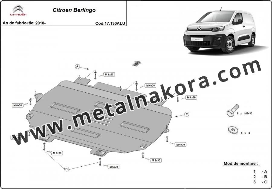 Алуминиев Предпазна кора за двигател, скоростна кутия, радиатор и предна броня изработени от алуминий Citroen Berlingo