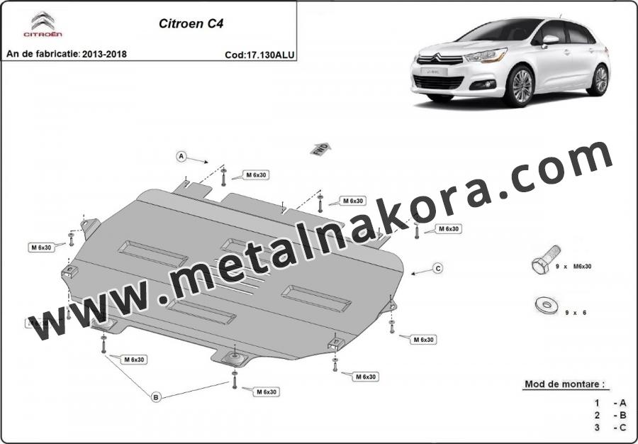 Алуминиев Предпазна кора за двигател, скоростна кутия, радиатор и предна броня изработени от алуминий Citroen C4