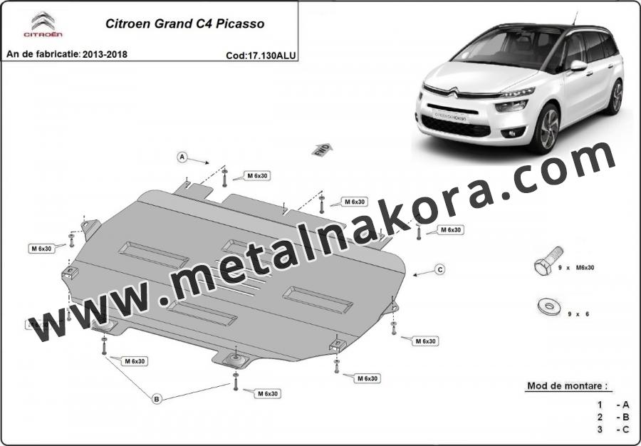 Алуминиев Предпазна кора за двигател, скоростна кутия, радиатор и предна броня изработени от алуминий Citroen Grand C4 Picasso