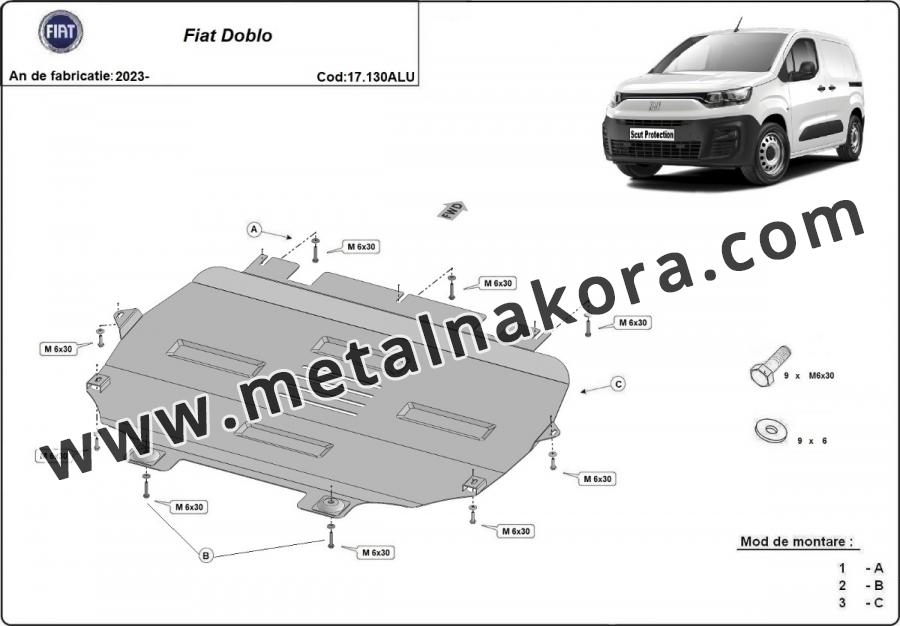 Алуминиев Предпазна кора за двигател, скоростна кутия, радиатор и предна броня изработени от алуминий Fiat Doblo
