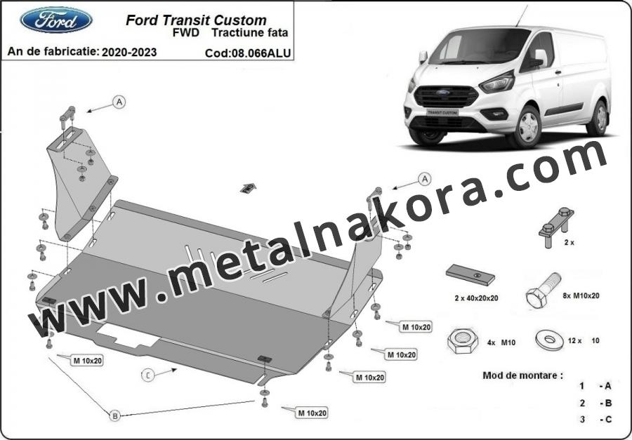 Алуминиев Предпазна кора за двигател, скоростна кутия, радиатор и предна броня Fordt Transit Custom -FWD