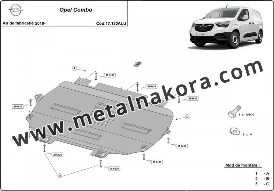 Алуминиев Предпазна кора за двигател, скоростна кутия, радиатор и предна броня изработени от алуминий Opel Combo E