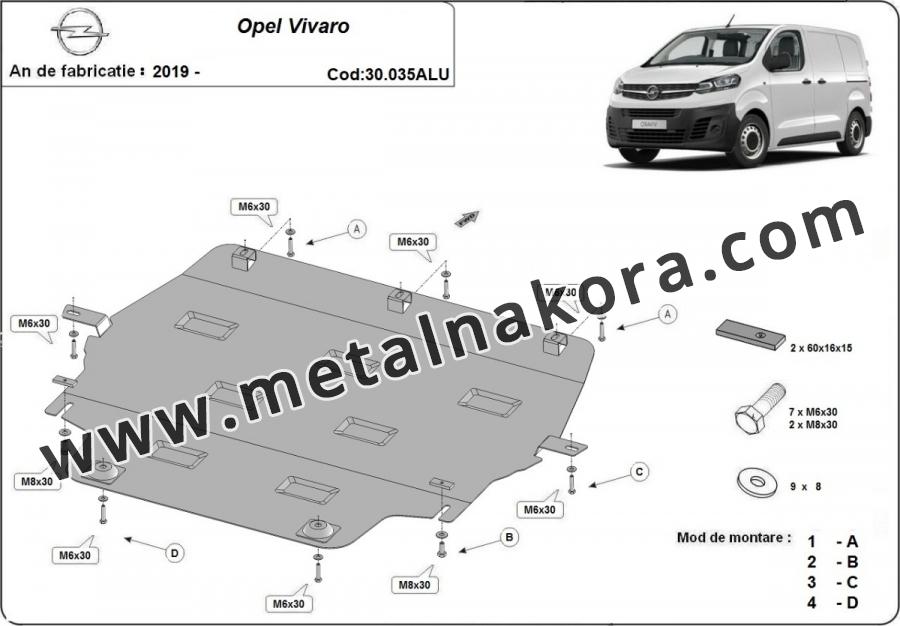 Алуминиев Предпазна кора за двигател, скоростна кутия, радиатор и предна броня изработени от алуминий Opel Vivaro