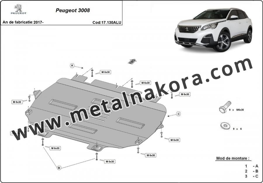 Алуминиев Предпазна кора за двигател, скоростна кутия, радиатор и предна броня изработени от алуминий Peugeot 3008