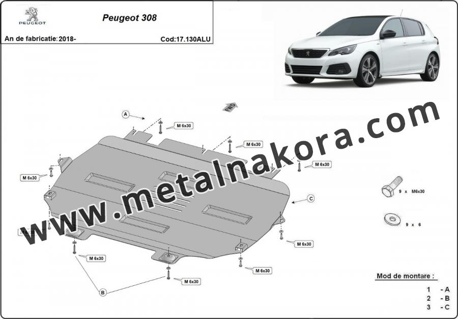 Алуминиев Предпазна кора за двигател, скоростна кутия, радиатор и предна броня изработени от алуминий Peugeot 308