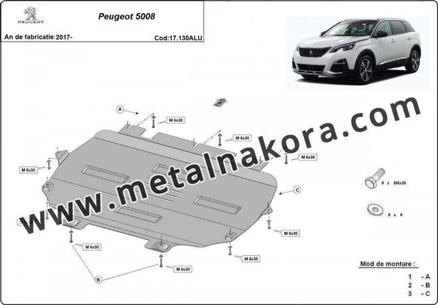Алуминиев Предпазна кора за двигател, скоростна кутия, радиатор и предна броня изработени от алуминий Peugeot 5008