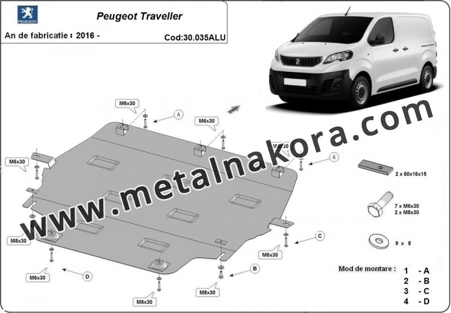 Алуминиев Предпазна кора за двигател, скоростна кутия, радиатор и предна броня изработени от алуминий Peugeot Traveller