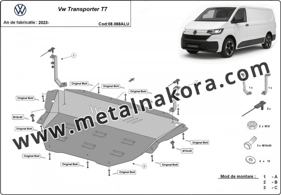 Алуминиев Предпазна кора за двигател, скоростна кутия, радиатор и предна броня Volkswagen Transporter T7