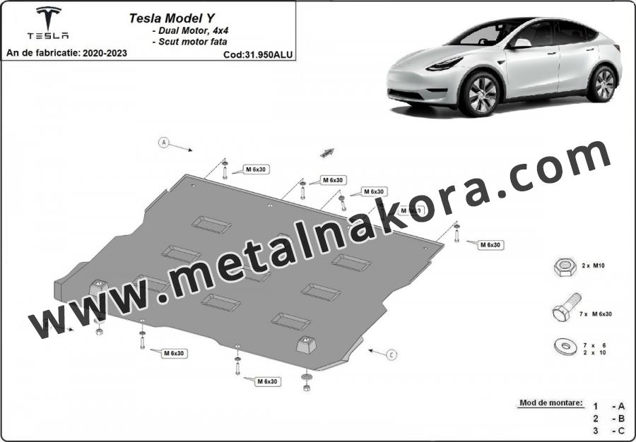 Преден щит на двигателя Tesla Model Y AWD - aluminiĭ