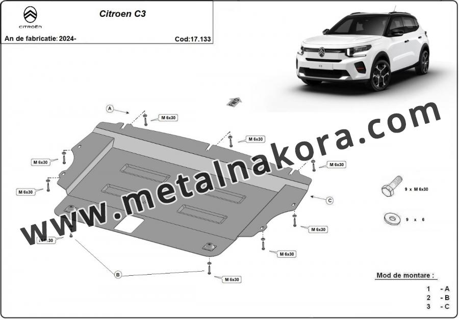 Предпазна кора за двигател, скоростна кутия и радиатор Citroen C3