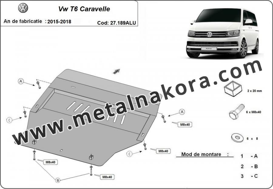 Предпазна кора за двигател, скоростна кутия, радиатор и предна броня изработени от алуминий Volkswagen Transporter T6 Caravelle