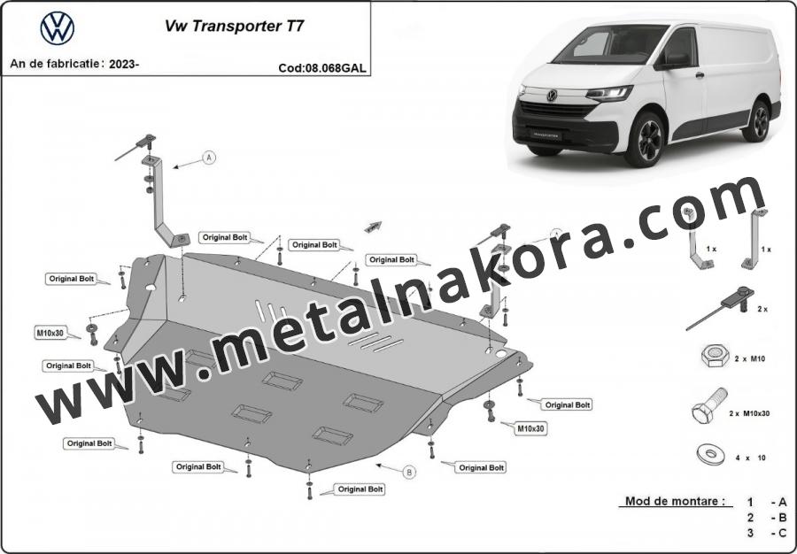 Предпазна кора за двигател, скоростна кутия, радиатор и предна броня Volkswagen Transporter T7 - поцинкована